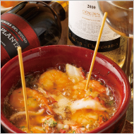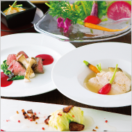 ●冷製すり流し帆立貝のタルタル添え●蟹とラタトゥイユを詰めた赤ピーマンミニサラダと●バサンバーニャカウダー●フォアグラと鶉の黄芯白菜包み蒸しトリュフの香りで●本日の市場の鮮魚浅利のだしポトフ仕立て●だいだいのグラニテ●熊本県産「和王」 のポワレ旬香野菜添えローズマリー赤ワインソースで●鴨と根菜の釜炊きごはん清し汁香の物●チョコレートムースのフィアンティーヌ(仕入れにより、内容変更の場合あり) ※5,000円・9,000円のコースもあり。