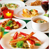 ●前菜4種盛合せ●彩り野菜のシーザーサラダ●ミネスト ローネ●選べる贅沢生パスタ(オマールor生ウニorフォアグ ラor渡りガニ)●広島産カキのフリット●和牛サガリのタリ アータバルサミコソーストリュフを添えて●ピッツァマル ゲリータ●X'masデザートプレート