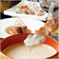 ●前菜の盛合せ●瞬間スモークサーモンのサラダ仕立て●和牛のフォアグラ包み焼き●広島産カキと木ノ子のガーリックオイル煮●串焼きチーズフォンデュ●バケット●ペペロンチーノ●Xmasデザート3種4,000円コースもあります。