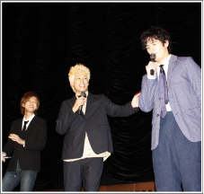 また、舞台挨拶の壇上では司会者に吉岡哲也役の佐藤さんが紹介されると「え~、今回福岡に来るにあたって、新しくパーマをかけてみました(笑)」と伊藤さんが答えると、それに対し「僕の番なんですよ」と突っ込み入れる佐藤さん。さらにふざける伊藤さんとのやり取りで終始、会場は爆笑に包まれていた。